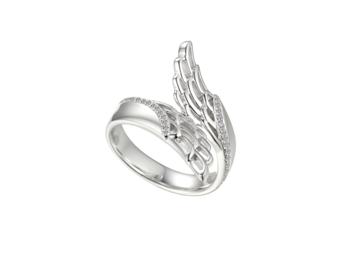 Express elegance and symbolism with the Angelica cubic zirconia ring from Amore Argento. Designed in the shape of angel wings, this statement piece is crafted in sterling silver and set with 15 sparkling pave cubic zirconia stones that catch the light beautifully.