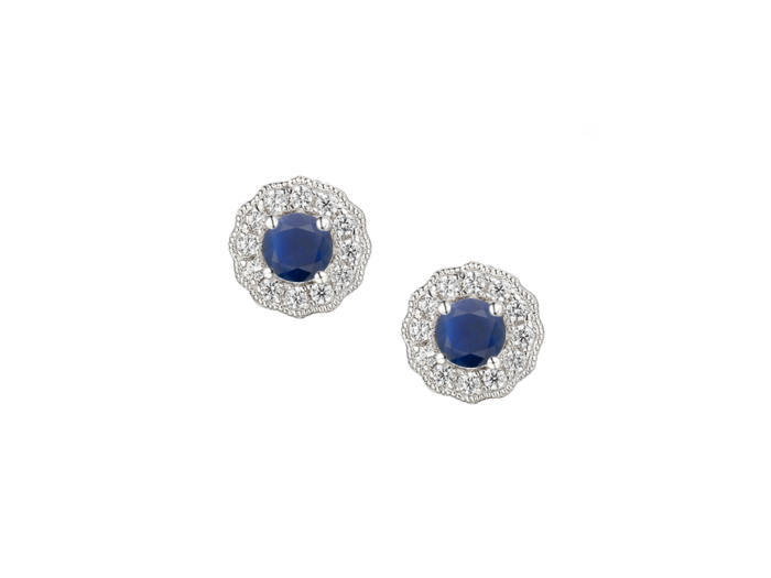 Elevate your jewellery box with these dazzling sapphire earrings, crafted in sterling silver for timeless appeal. Each earring features a round-cut blue sapphire, framed by a halo of sparkling cubic zirconia that enhances the deep richness of the gemstone. The bold colour of the blue sapphire earrings offers a striking contrast against the brilliance of the silver, making them an elegant choice for both everyday wear and formal occasions.