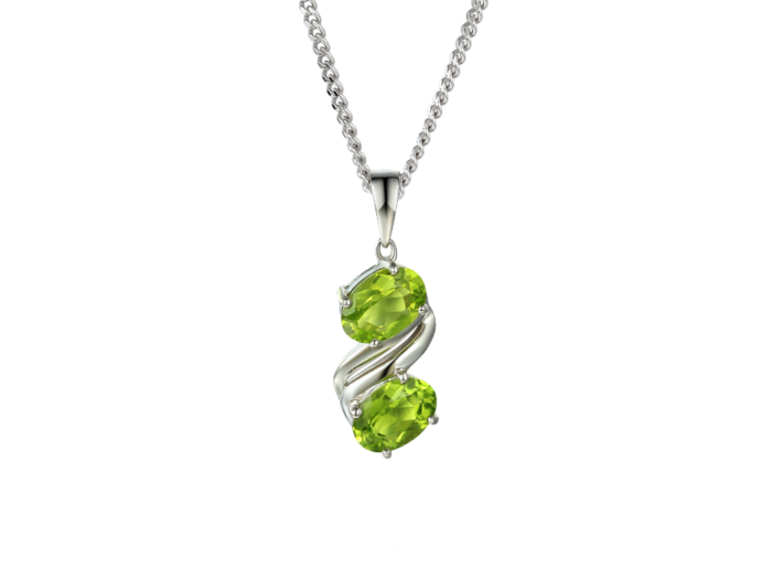 Add a burst of vibrant colour to your jewellery collection with this stunning peridot necklace. Featuring two oval-cut gemstones in a vivid lime green hue, the design flows gracefully with a sterling silver twist detail that highlights the gemstones’ natural brilliance. Known as the August birthstone, peridot symbolises renewal, prosperity, and positivity, making this necklace both meaningful and eye-catching.