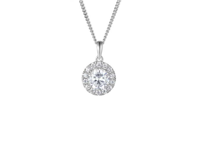 Bring radiance to your jewellery collection with this elegant cubic zirconia necklace. Featuring a brilliant 6mm central cubic zirconia surrounded by a sparkling halo of 14 smaller stones, this cluster pendant creates a dazzling effect that is both modern and timeless. Crafted in sterling silver, it’s the perfect piece to add everyday glamour or an extra touch of sophistication for special occasions.