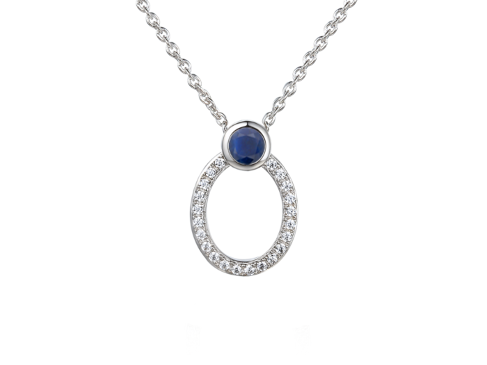 The Amore design team created this simple but elegant oval necklace combining cubic zirconia with a precious Sapphire gemstone. Presented with an adjustable 16 to 18inch silver curb chain. The perfect addition to your jewellery collection with a beautiful Sapphire that adds classic styling to your wardrobe. The Amore Argento team created this stylish necklace to bring a hint of colour into your daily life.