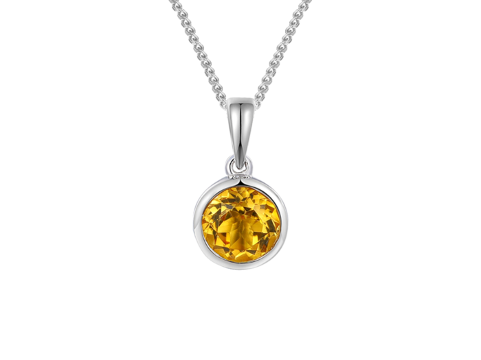 A classic design, this Necklace is perfect for those born in November or anybody else who will enjoy this sunny and bright shade of orange. A vibrant and vivid hue, the citrine is connected to wealth, success and cheerfulness. An elegant and eye-catching addition to any outfit.
