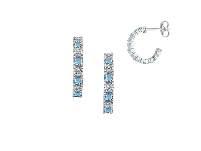 These shimmering hoop earrings have claw set blue topaz and cubic zirconia. Designed to be plain but perfect for day or evening wear, these are just the right amount of picture perfect and sparkle. A classic that is designed to last, this pretty design will make the perfect accessory for any outfit.